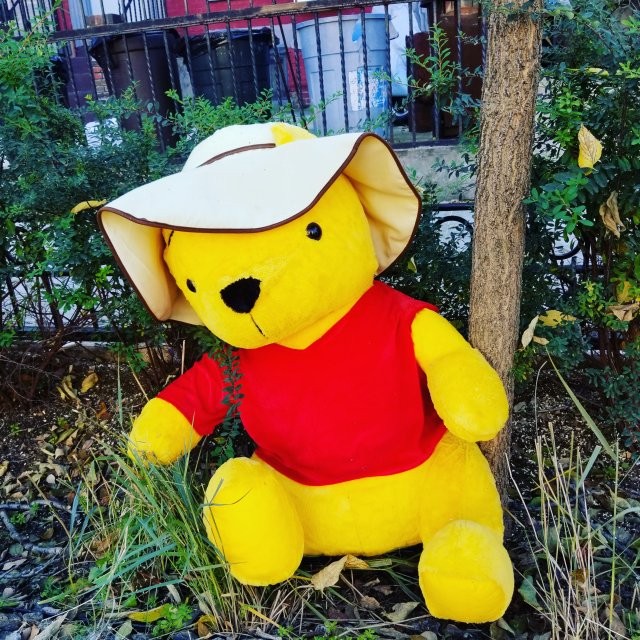 Wacky, Weird and Wonderful On November 2, 2018 By dancingpalmtreesIn Uncategorized1 Comment Wacky, Weird and Wonderful Don’t know why this Ginormous Winnie the Pooh was left outside on the street yesterday but I hope either his owners brought him inside or he was adopted into a good home.