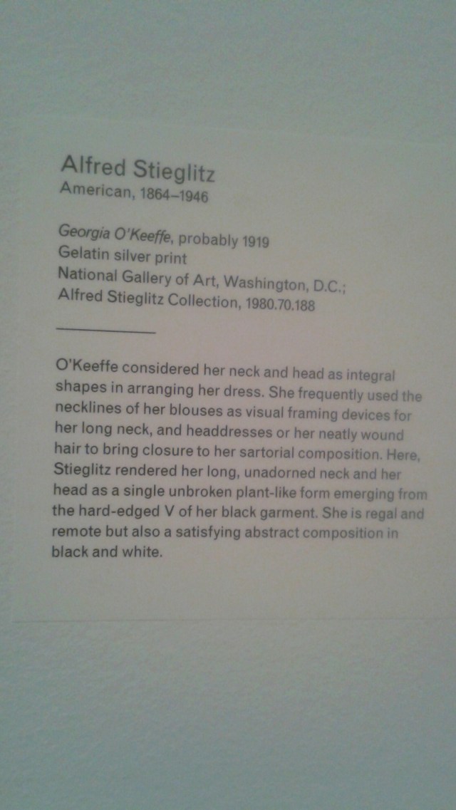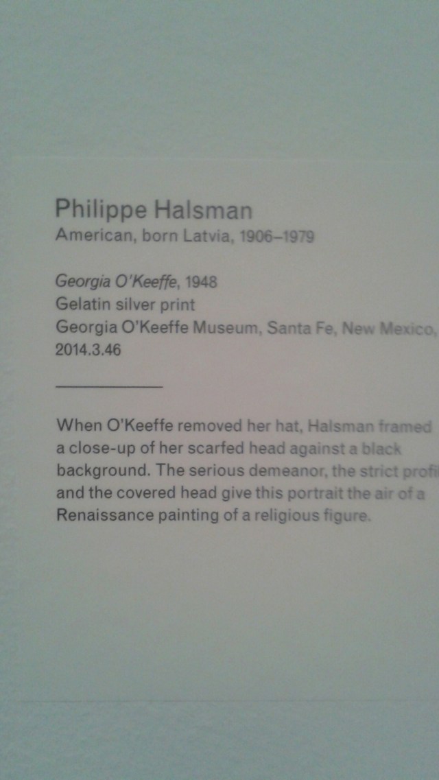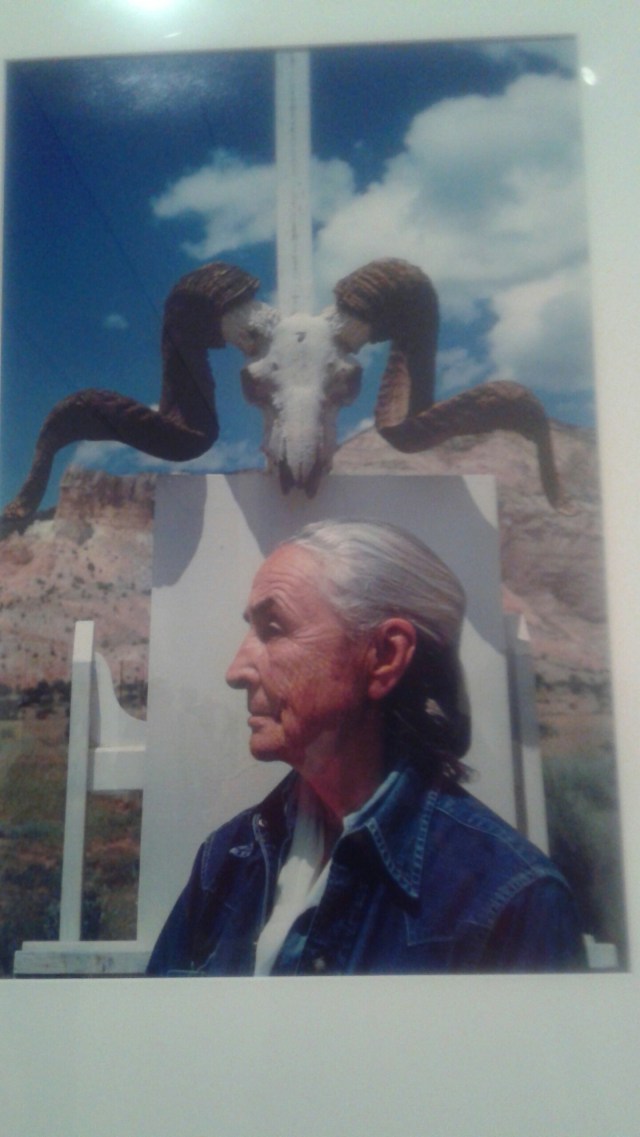 This time I was able to take some photos. As you can see Ms. O’Keefe posed for many photos. I like the fact that she kept her own last name instead of taking her husband’s last name, she was plain spoken, had simple utilitarian clothing that allowed her to paint, she was not caught up in fashion, and she aged. Naturally. Without shame or pretense.
